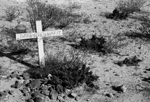 Schlümpfe. Ein einfaches Holzkreuz ziert das Grab des mächtigsten